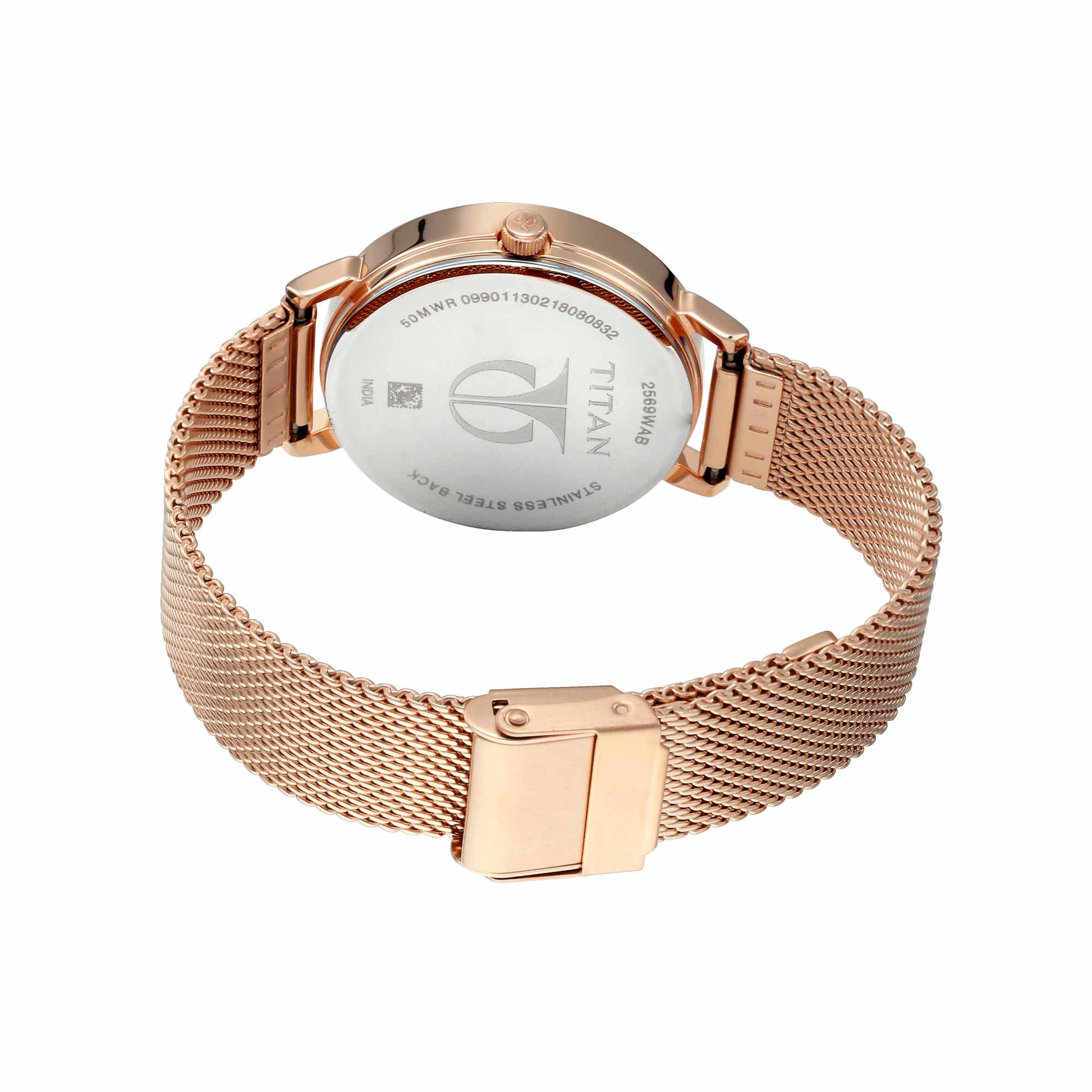 Multitask with this multi-function watch! Embellished with crystals and Rose Gold Mesh Strap, this watch makes a dynamic yet classy style statement.