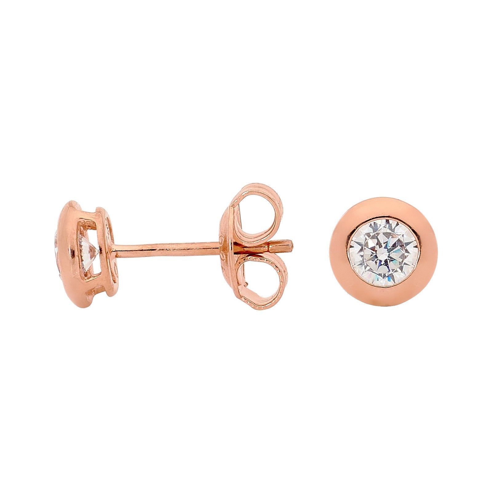 These contemporary, simple earrings are supremely elegant. The bezel set clear cubic zirconia is framed by a border of high shine 18ct Rose Gold plated sterling silver. These studs are perfect for everyday with their modern and understated look. Team it up with a Georgini pendant for an elegant timeless look. A perfect piece for any woman!